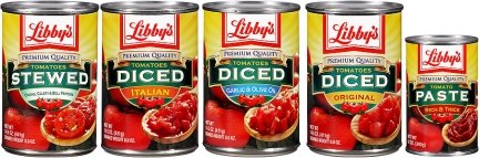 Libby’s tomato products: Tomato Paste, Sauce and Puree;