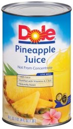 Dole Pineapple Juice in the can is 100% juice, not from concentrate, is rich in nutrients and naturally sweet. It’s a refreshing drink, and works beautifully in marinades for your favorite meat recipes.