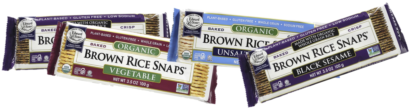 Edward & Sons Brown Rice Snaps® are oven baked instead of fried and great for healthy, whole grain snacking. Exceptionally crisp and delicious they are great straight out of the package or served with your favorite dips and spreads.