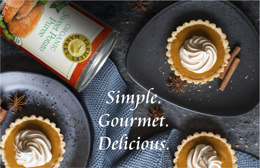 We’re featuring Farmer’s Market Canned Organic Pumpkin, Pumpkin Pie Mix, and Sweet Potato Puree.
