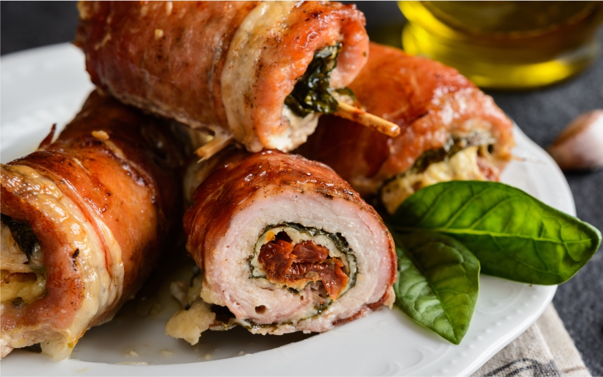 If you love cheese and bacon, you’ll definitely enjoy these Bacon Wrapped Pork Cutlets stuffed with cream cheese, sundried tomatoes, and spinach.