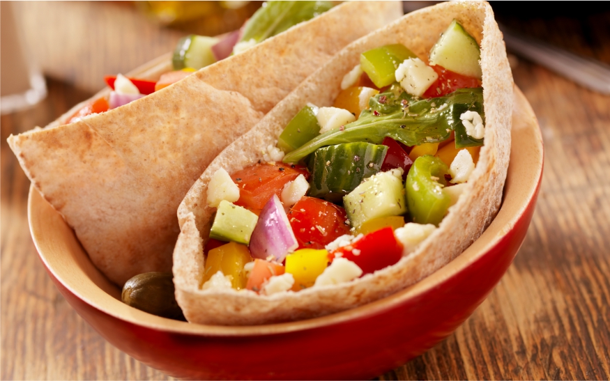 These pita pockets are crammed full of fresh vegetables.