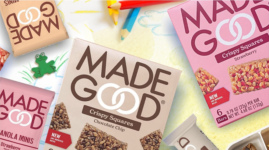 We’re featuring Made Good Organic Strawberry, Chocolate Chip Granola Minis and Crispy Squares – and Cookies and Cream Oat Bites.