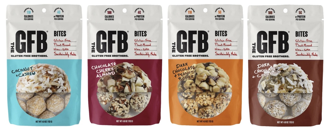 Try The G. F. B. Coconut Cashew Crunch, Dark Chocolate Coconut, Chocolate Cherry Almond, and Dark Chocolate Peanut Butter Bites, all gluten-free.