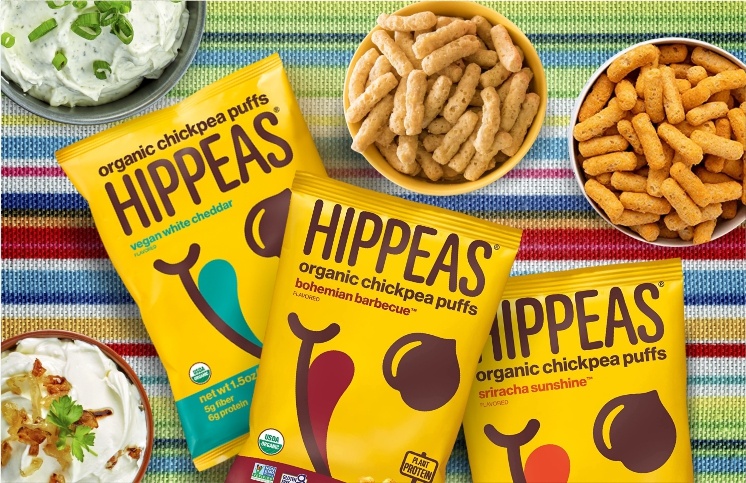 Try Hippeas Organic Vegan White Cheddar, Sriracha, and Bahamian Barbecue Chickpea Puffs.