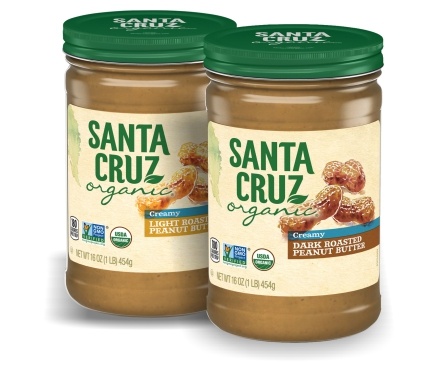 Try Santa Cruz Organic Dark and Light Roast Peanut Butter, in Creamy and Crunchy styles.