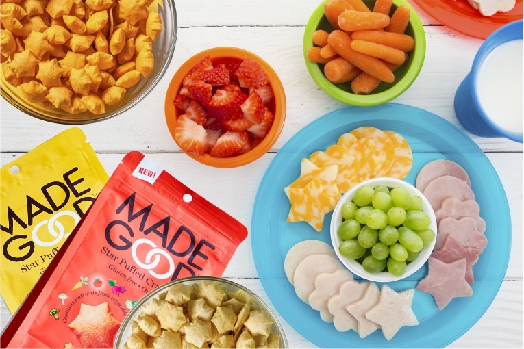 This month you can try Made Good Organic Star Puffed Cheddar or Pizza Crackers.