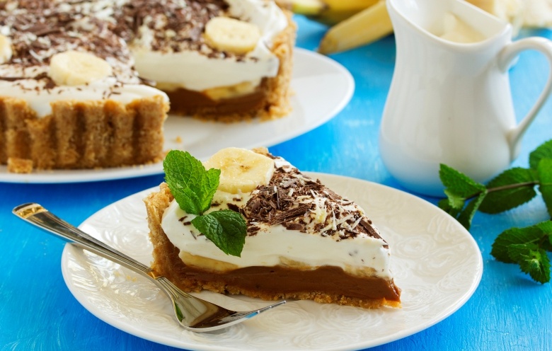 Banoffee pie is a caramel and banana dessert in a rich, buttery graham crust and topped with whipped cream and chocolate shavings. Now that bananas are available on the Island, give this easy recipe a try.