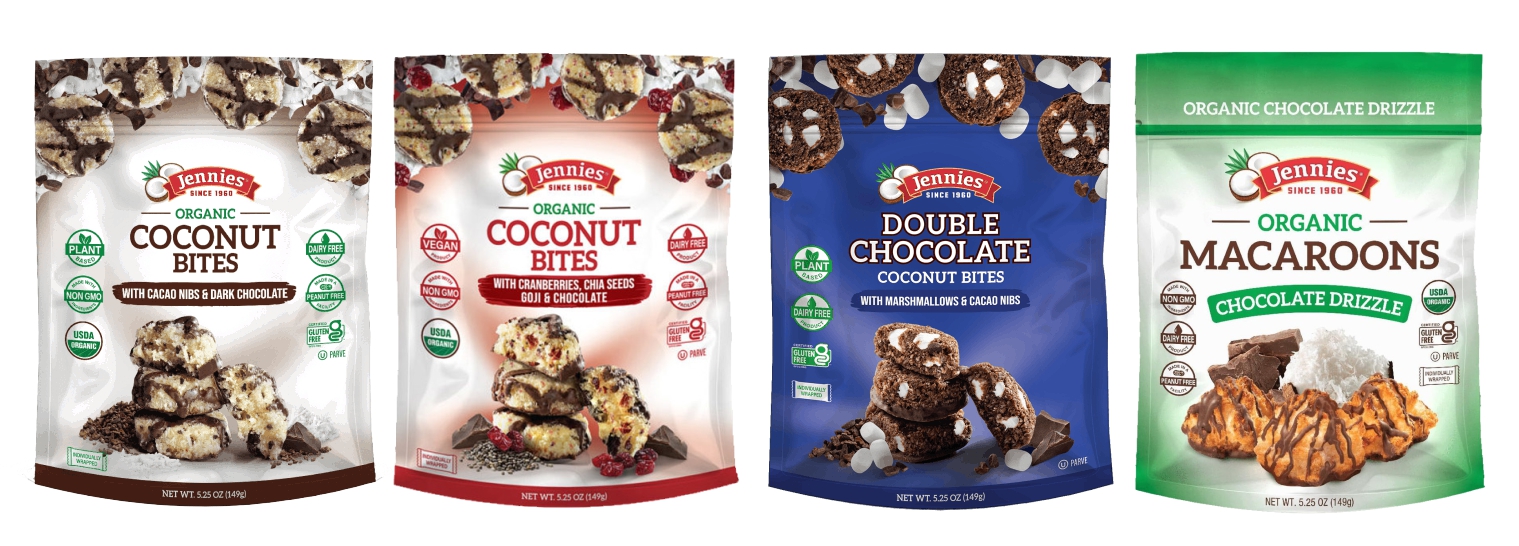 Jennie’s coconut-based treats combine indulgence with simple ingredients. Their Coconut Bites with Cranberries, Chia Seeds, Goji & Chocolate, Coconut Bites with Cacao Nibs & Dark Chocolate, and Double Chocolate Coconut Bites are rich, chewy, and satisfying. The Chocolate Drizzle Macaroon adds an extra layer of decadence, making these perfect for dessert trays or a sweet finish after dinner.