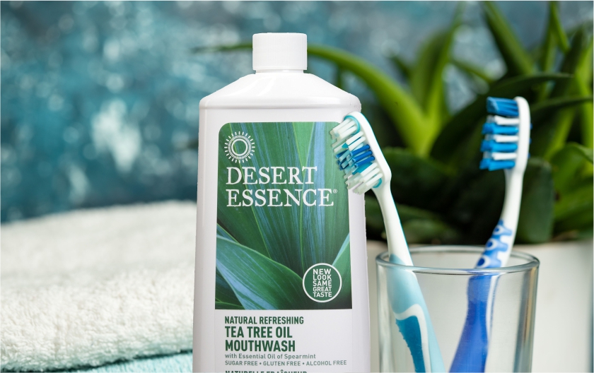 Keep your smile bright and your mouth heath with Desert Essence Tea Tree Oil Mouthwash. A botanical blend of oils and extracts including soothing Aloe provide care for teeth and gums. Australian Tea Tree Oil helps defend against sugar acids while reducing buildup. A sweet burst of Spearmint Oil helps keep your mouth feeling clean and extra fresh.