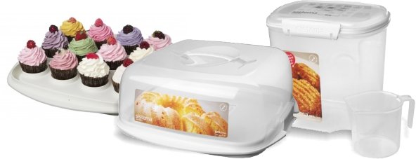 The Sistema’ 8.8L Cake Box, part of the Bakery Collection, is a clever design that features a flip base that will hold either 12 cupcakes or 1 cake.
